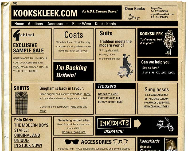 A website for a vintage fashion outlet.